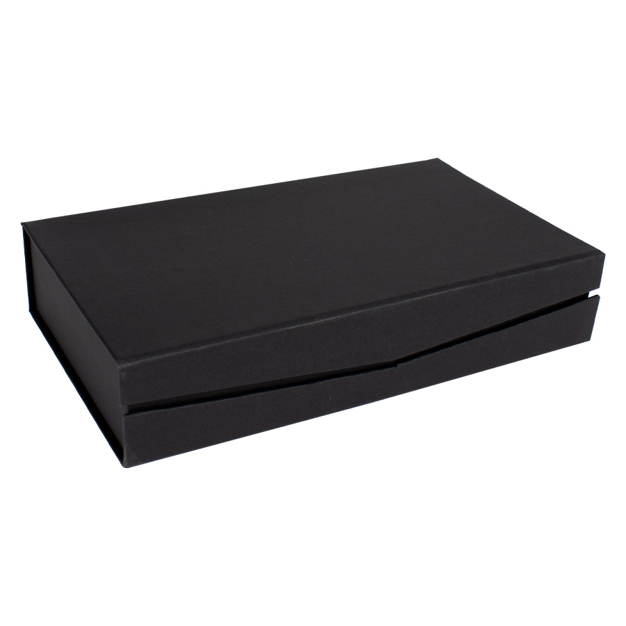 •Presentación: Caja de cartón forrado negro con cierre imantado, interior acolchado de espuma y tela poliéster satinado negro, con troquel.